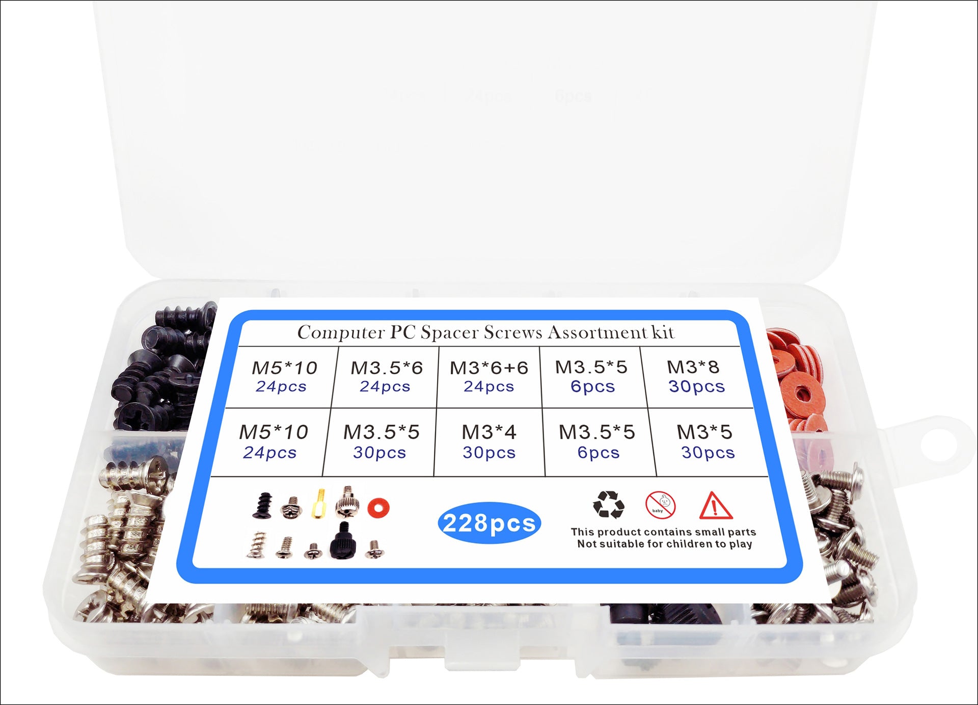 Comprehensive screw set for computer case assembly and PC hardware installation.